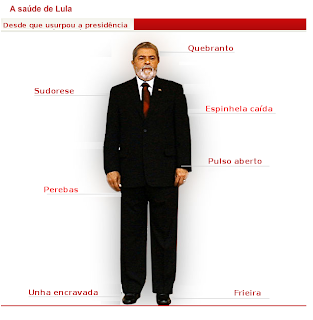 Não obstante o fato de que será defenestrado em breve, o molusco escarlate parece estar vivendo seu ocaso pois conforme foi descortinado pela imprensa nos últimos dias, a sua saúde está precaríssima já que o mesmo é afligido pelos males típicos da gentalha, devendo assim ter seu fim abreviado. Isto não deixa de ser um fato triste pois a compaixão é uma das virtudes principais dos homens bons. Além do mais, queríamos que ele sobrevivesse para ver a nossa vitória triunfante final. Resta-nos agora o alívio e o regozijo em saber que de uma forma ou de outra a nação estará livre das garras do bolchevismo lullista."